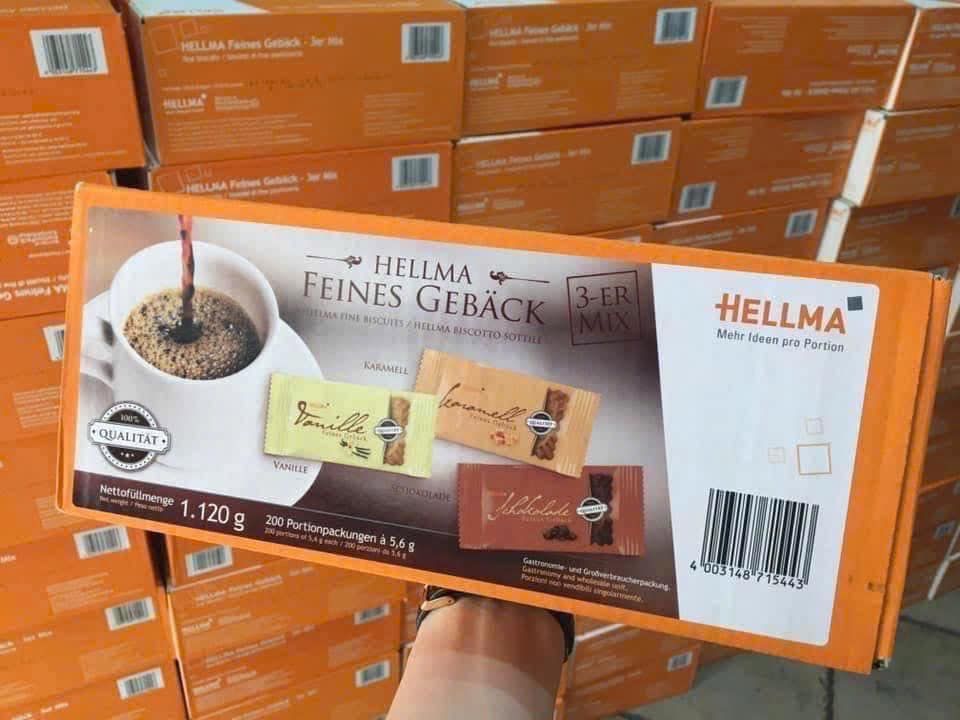 Thùng bánh Hellma 200c mix ba loại bánh quy hot hit là vani, caramel và socola giòn được đóng gói riêng để đảm bảo bánh không bị ỉu. Đây là món ăn kèm lý tưởng với 1 tách cà phê, ca cao hoặc trà nóng![]()