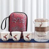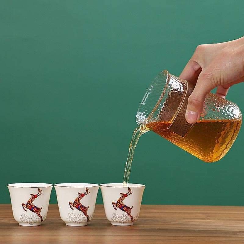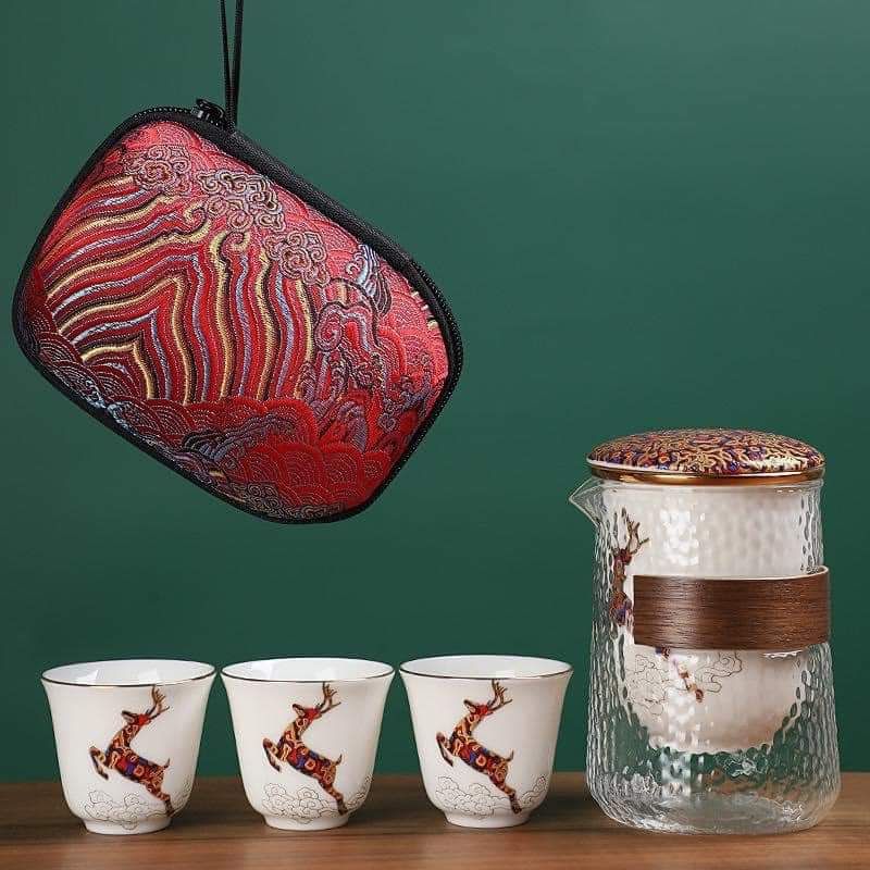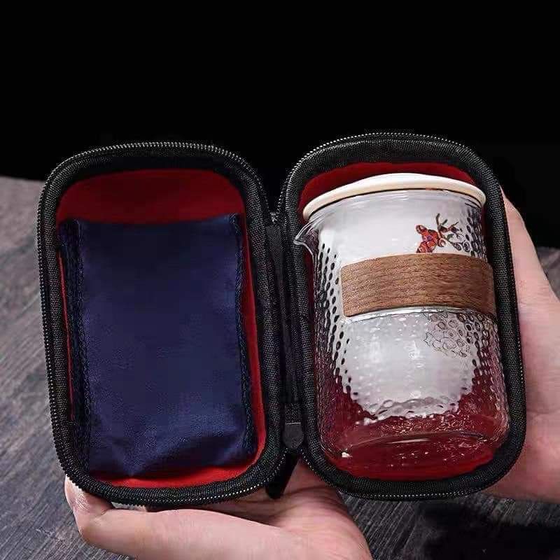 ⚜Bộ ấm chén pha trà lồng nhau bằng thủy tinh và sứ vẽ họa tiết đẹp mắt (Có kèm túi du lịch chống va đập)