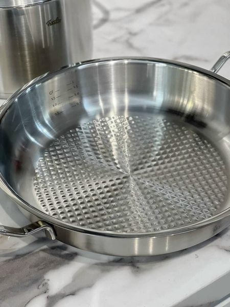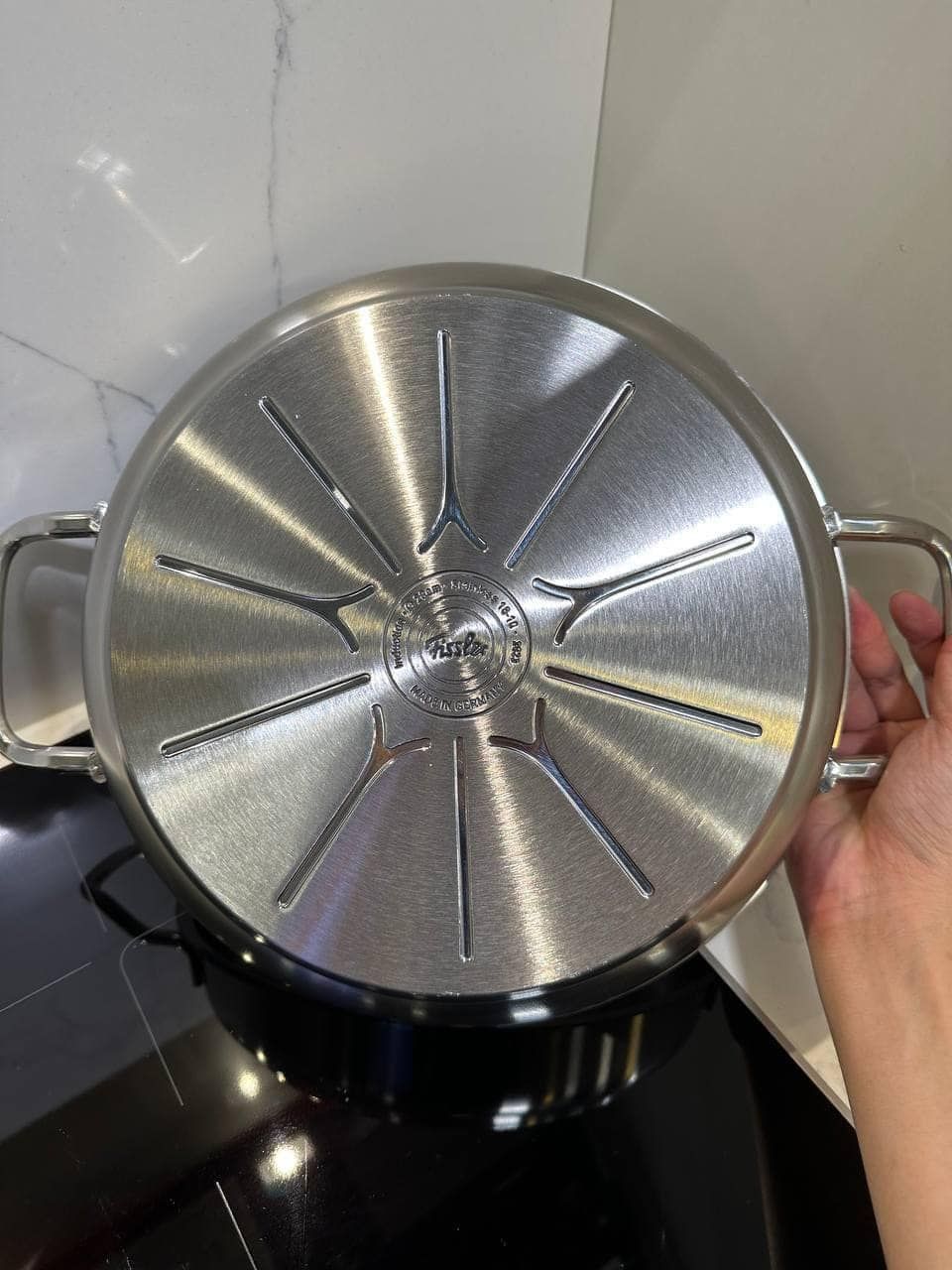 - Thành chảo inox cao cấp Fissler có vành rót cực lớn giúp rót chất lỏng chính xác, không bị tràn ra ngoài