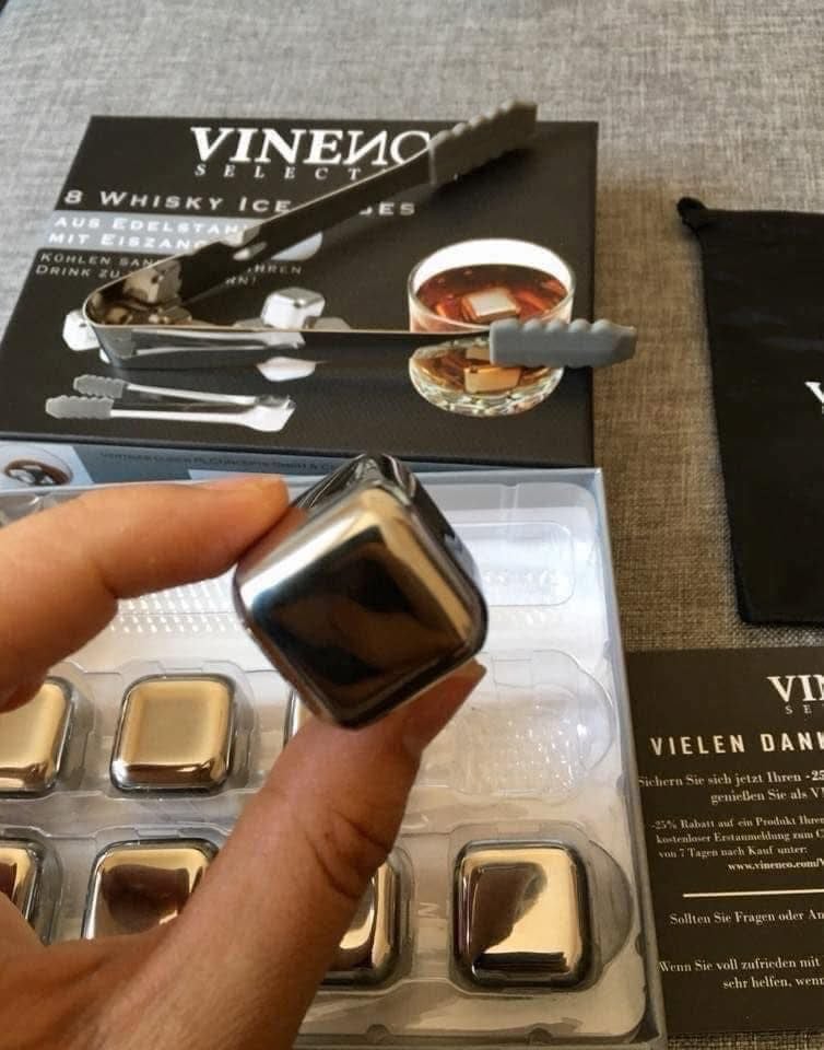- Viên đá được làm bằng thép không gỉ, an toàn cho sức khoẻ, có thể dễ dàng mang đi.