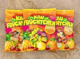 Kẹo hoa quả mềm Kau Fruchtchen được chế biến trên một dây chuyền hiện đại với nguồn nguyên liệu được lựa chọn từ các loại quả tươi nhiệt đới và thảo mộc tinh khiết trên thế giới hoàn toàn không sử dụng hóa chất Kẹo mềm, nhiều vị, chia thành từng chiếc kẹo riêng biệt.