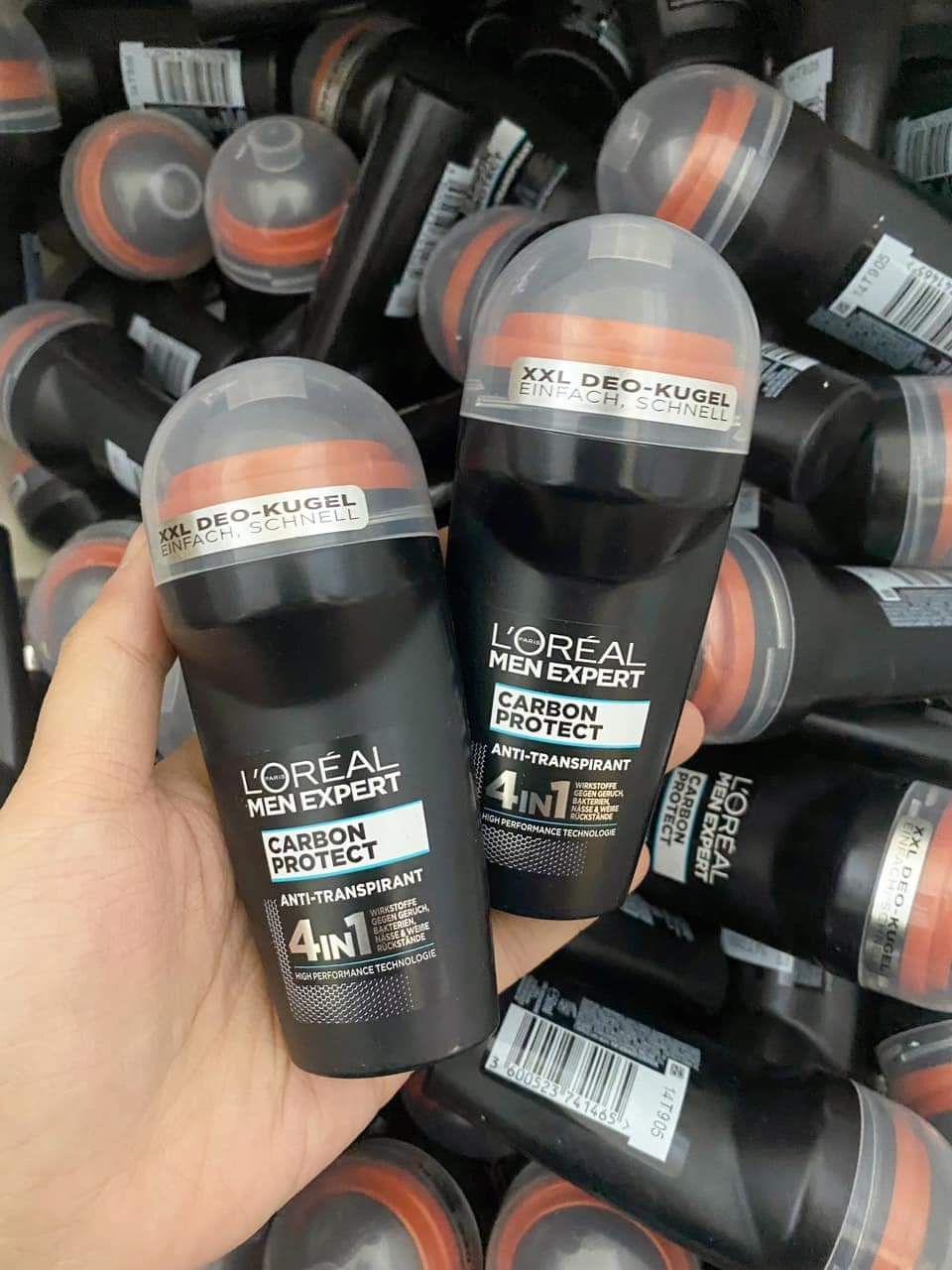 • Lăn khử mùi Loreal Men Expert Carbon Protect (đen viền cam): chống mùi hôi cơ thể, chống ẩm, chống vi khuẩn và không tạo cặn – 1 sản phẩm, 4 hiệu ứng mạnh mẽ 48h.