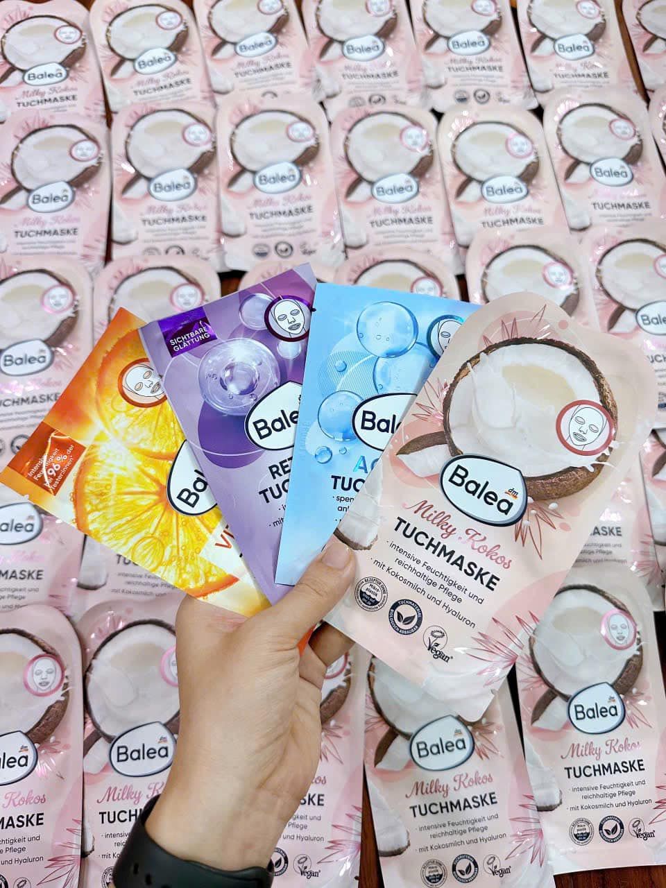 Mặt nạ thuần chay Balea Aqua tuchmaske cho da nhạy cảm - Cấp nước giảm nếp nhăn, sáng da bóng mịn.