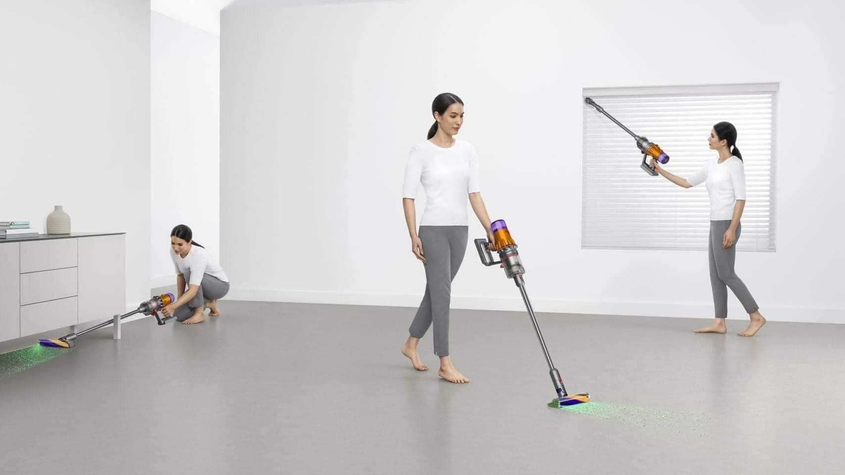 Máy hút bụi Dyson V12 trang bị thêm đầu hút Fluffy gắn tia Laser. Hoạt động của tia laser giúp người dùng nhìn thấy rõ hơn mức độ bụi bặm của sàn nhà. Tia laser cũng được định vị "chính xác ở một góc 1,5 độ, cách mặt đất 7,2mm".