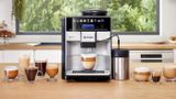 - Bảng điều khiển cảm ứng 1 chạm với các biểu tượng đồ uống trực quan, dễ sử dụng, chỉ một thao tác bấm đơn giản để pha 7 loại đồ uống: Espresso, Latte Macchiato, Espresso Macchiato, Caffe Latte, Coffee, Sữa tạo bọt, Cappuccino