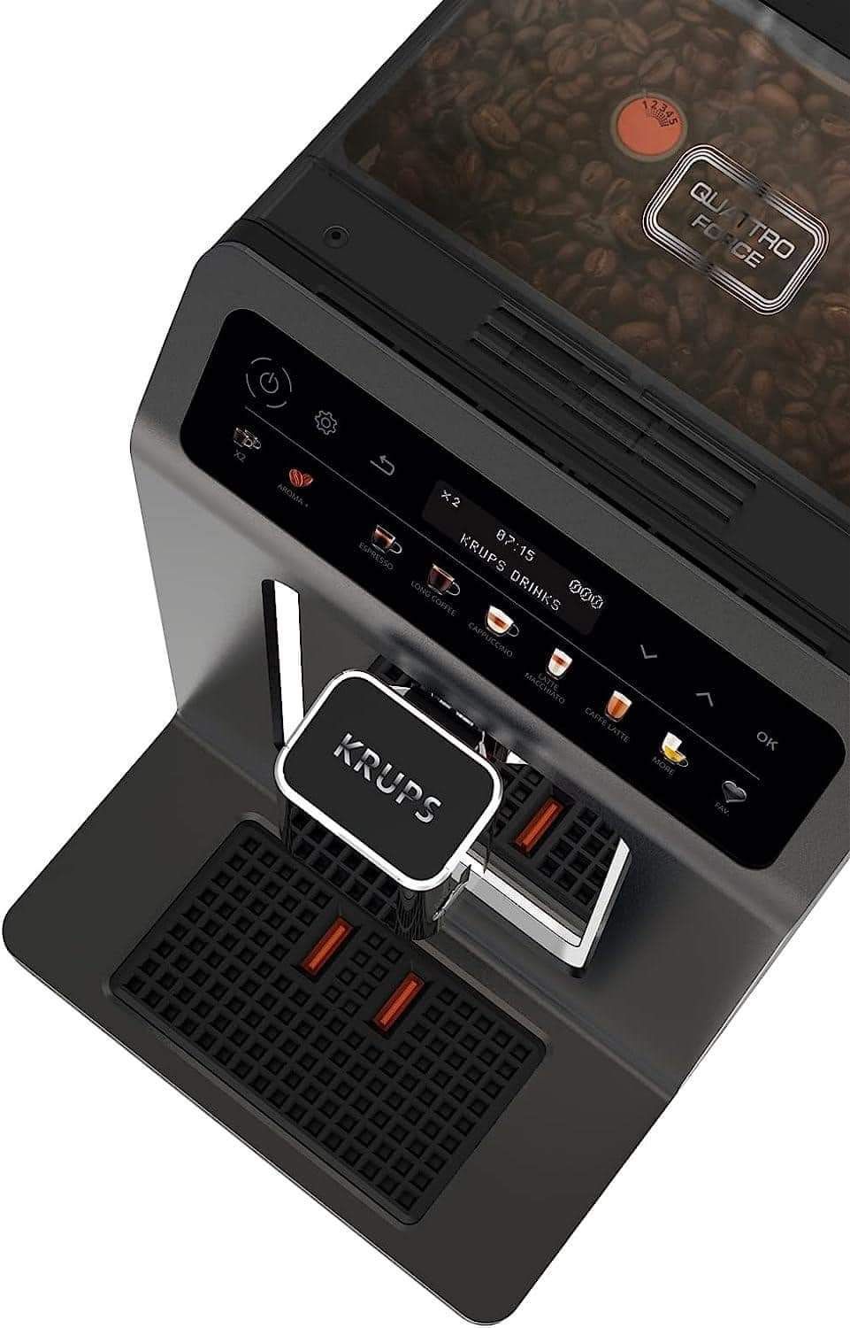 - Máy pha cà phê Krups EA895N made in France được trang bị công nghệ pha chế cà phê Barista Quattro Force độc đáo, với cối mài hình nón bằng thép không gỉ, hệ thống nén Tamping chất lượng cao với áp lực nén lên đến 30 kg, hệ thống tối ưu hóa quá trình pha cà phê và làm sạch hoàn toàn tự động
