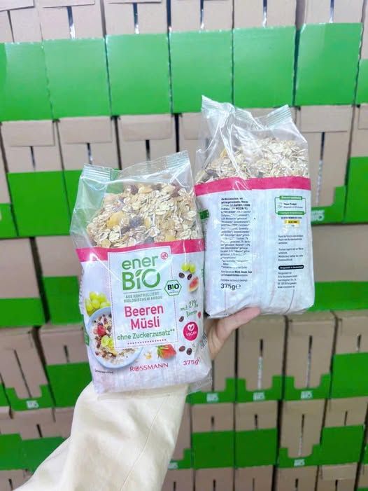 NGŨ CỐC TỔNG HỢP ENER BIO MUSLI -100% canh tác hữu cơ - Sản phẩm là sự kết hợp của yến mạch nguyên chất, trái cây, hạt khô - Ngon - thơm- giòn- tiện lợi, gói 375gr