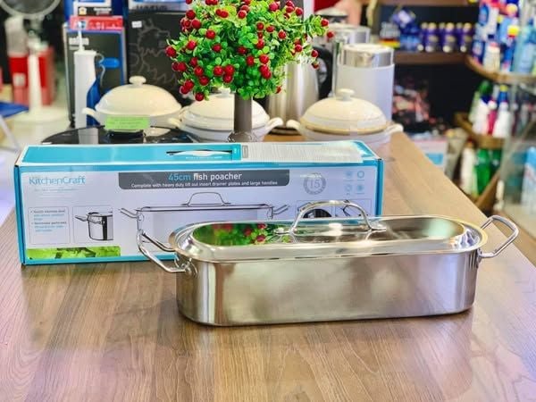 Nồi Hấp cá Kitchen Craft có nắp đậy được làm bằng thép Cromagran không gỉ cao cấp, siêu bóng sáng đẹp