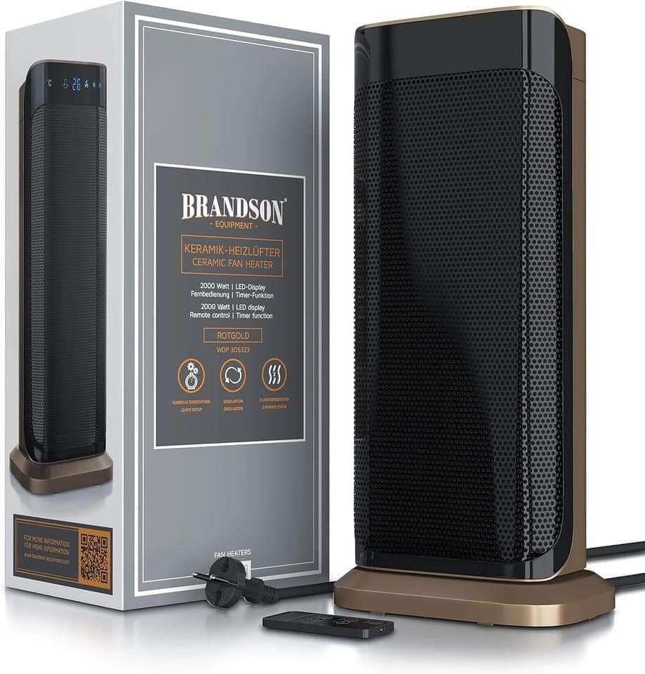 🌈Brandson - quạt sưởi có điều khiển từ xa - quạt sưởi gốm phòng tắm tiết kiệm năng lượng yên tĩnh - lò sưởi nhanh với chức năng dao động - 2 x cài đặt nhiệt - hẹn giờ - Máy sưởi nóng - Chứng nhận GS.