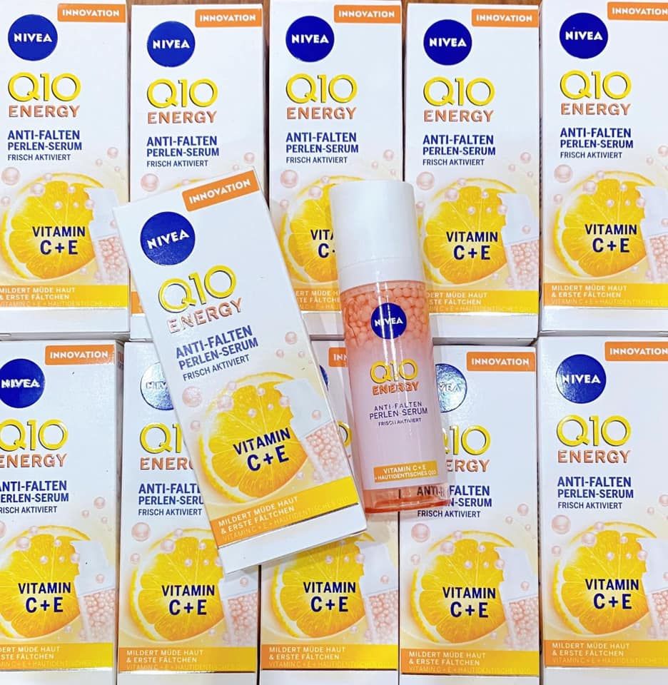 Serum Nivea Q10 Energy C+E giảm mờ nếp nhăn & sạm nám, giúp da luôn trắng sáng rạng rỡ.