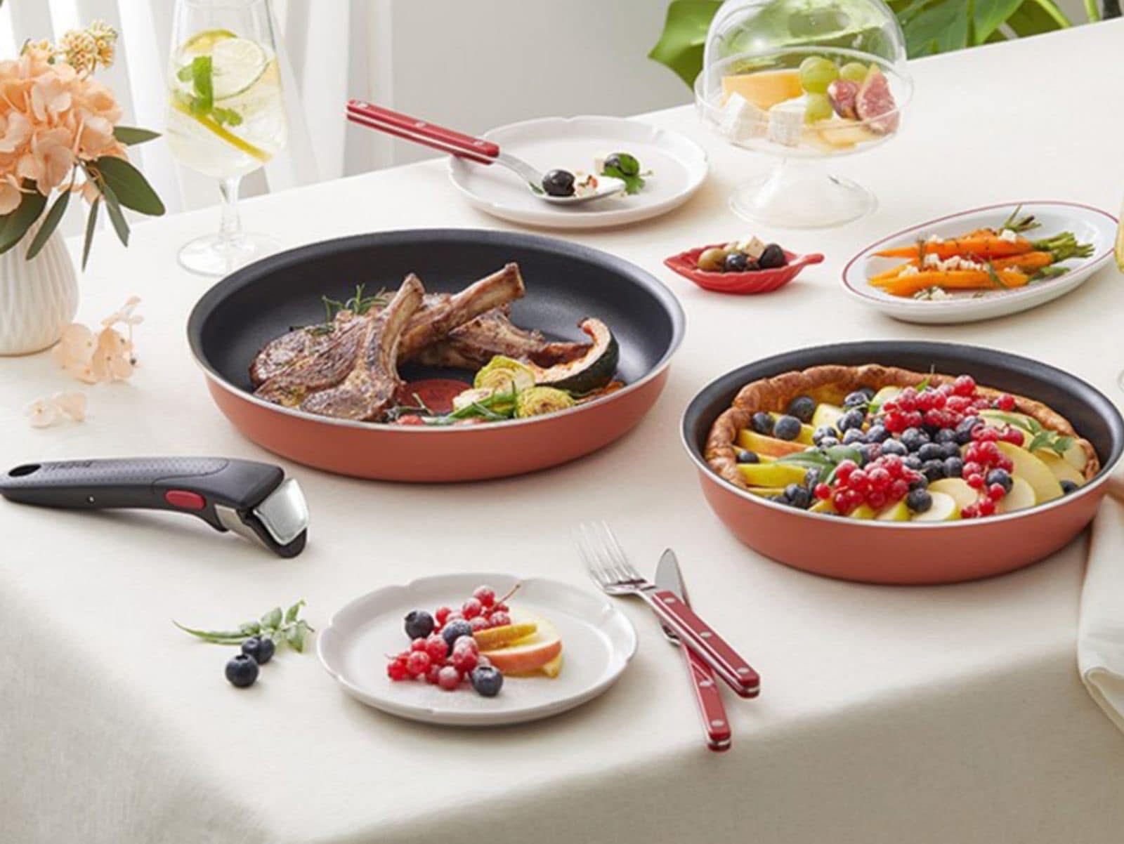 Set 2 chảo chống dính TEFAL 22 + 26cm Ingenio Daily Chef L3989622 cán rời màu đỏ made in France