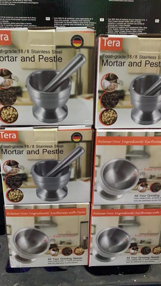 Đế cao su chống trượt chắc chắn. Chất liệu thép không gỉ nên lau rửa dễ dàng và sạch sẽ, nặng khoảng 1kg cho cả set. Tặng kèm 2 nắp đậy cối và 1 cây chổi vệ sinh quá tiện dụng.