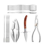 Bao gồm: một con dao hàu, một kẹp càng cua, một chiếc kìm kẹp, sáu nĩa ăn tôm càng và sáu nĩa cua.