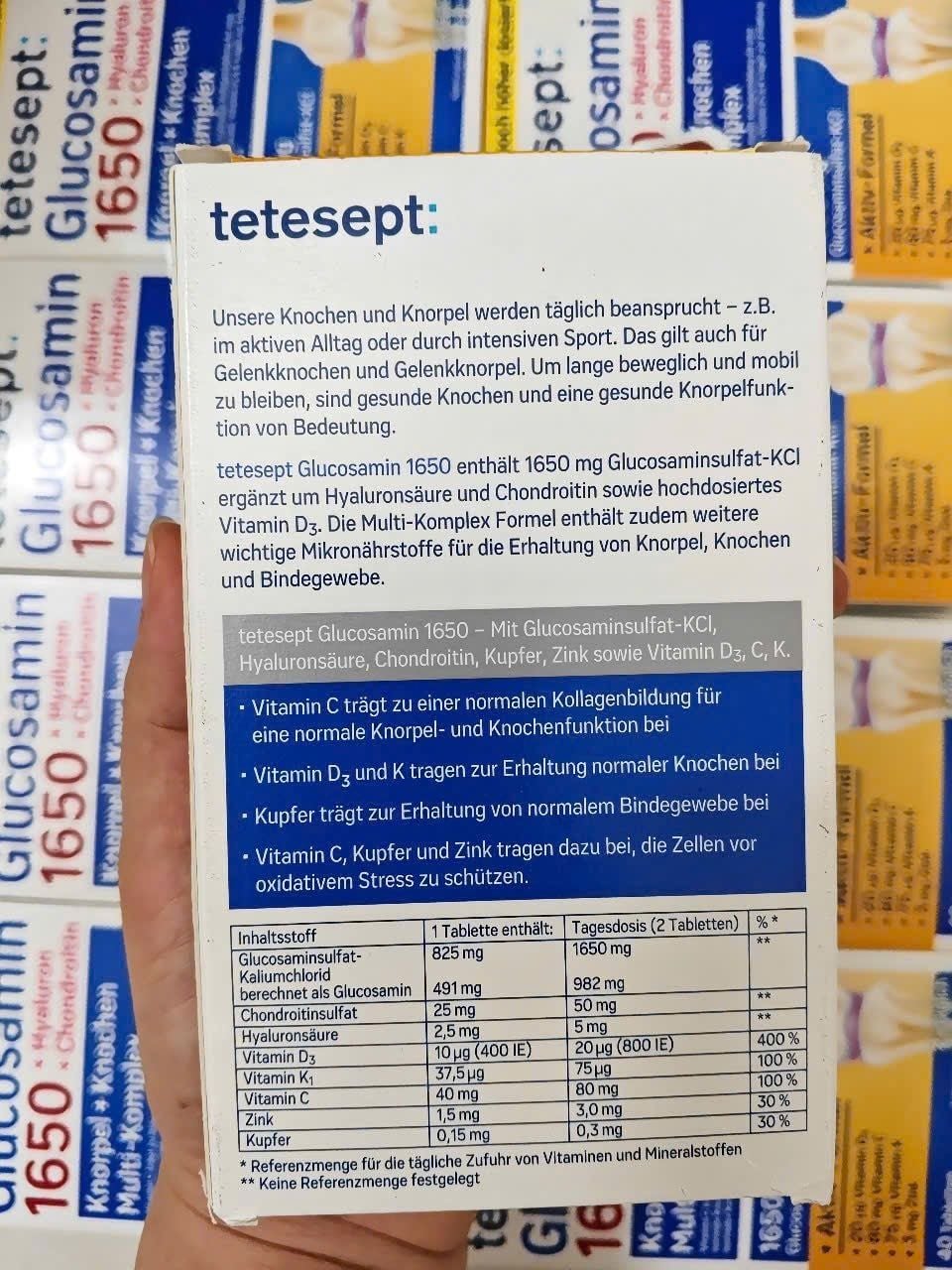 GLUCOSAMIN 1650 TETESEPT - THUỐC BỔ XƯƠNG KHỚP, GIẢM ĐAU XƯƠNG KHỚP HIỆU QUẢ NHANH!!!